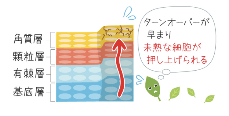 ✅炎症した皮膚を治そうと、新しい細胞がどんどん作られてターンオーバーが早まる