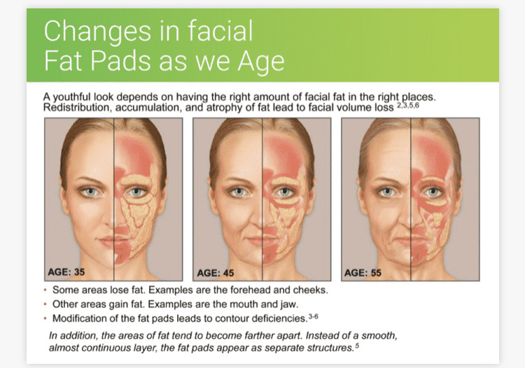 若い時は、みっちりと詰まった脂肪のコンパートメントが隙間なく並んでいます。これが加齢することで、脂肪の量が減少するとともに、コンパートメント自体も下垂していることが分かります😭