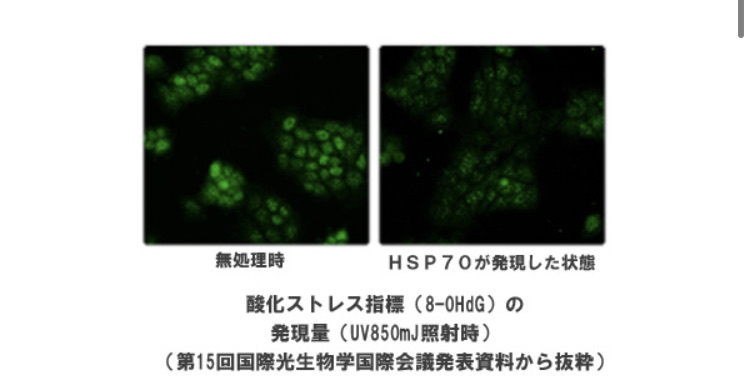 個人的に驚いたのは、HSP70がシワだけでなくシミの原因も抑制してくれる、という点です‼️しかも自前のタンパク質活性化するだけですし化粧品を使うよりもリスクが低い🤗✨