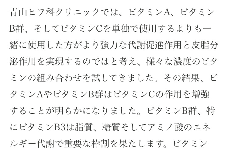 ただ、ビタミンB3(ナイアシンアミド)は、ビタミンAやCと組み合わせることで皮脂抑制にも相乗効果があると言われていますので、補足的に取り入れることをお勧めしている次第です(マストではありません🙏)。
