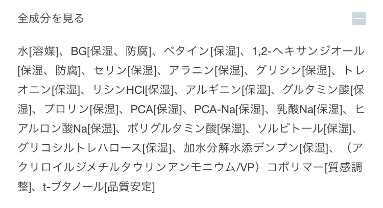 松山油脂の『アミノ酸浸透ジェル』の成分表です。たっぷりアミノ酸類が配合されていますね🤤✨